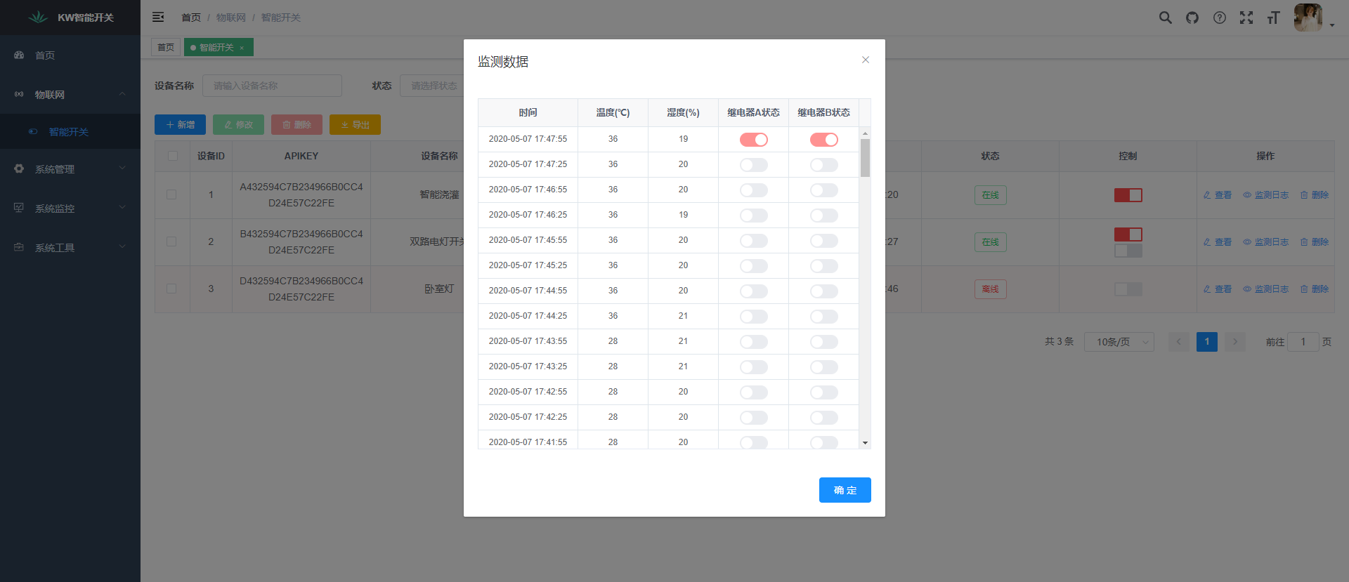 - 相关技术:Spring boot、MyBatis、Spring Security、Jwt、Mysql、Redis、Mongodb、MQTT