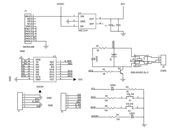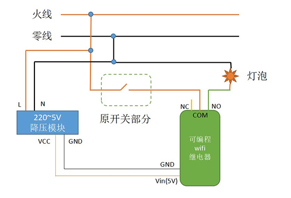 - 电路接线图:(默认5V电压,如果要接220V交流电,需要搭配一个AC-DC降压模块)