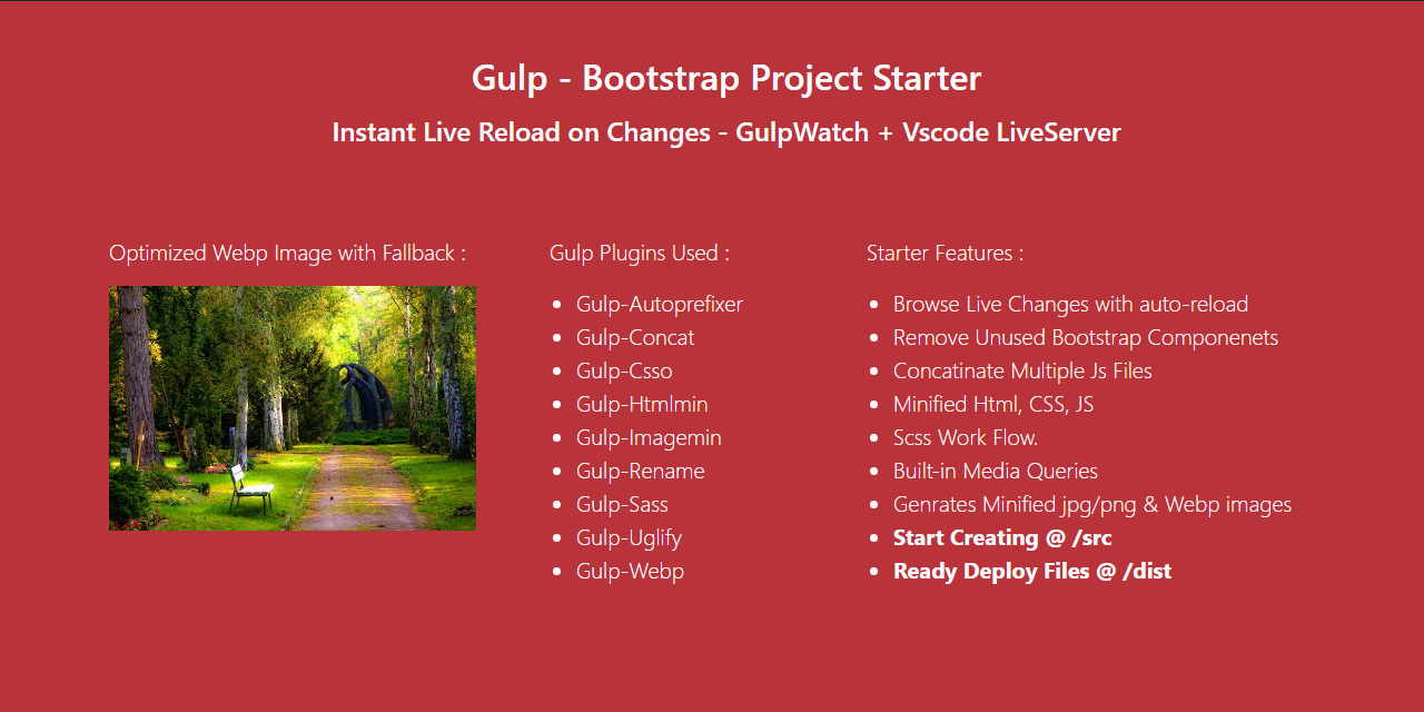 Gulp + Bootstrap starter is extended with the following plugins.