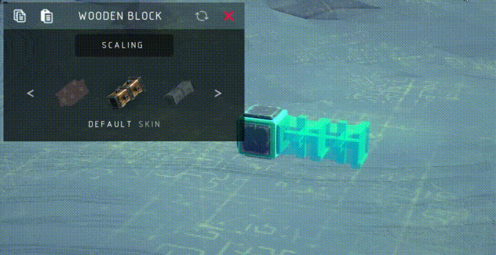 This mod enables you to scale blocks before or after placing. Use the prescale panel to adjust the block size before placing, or use the sliders in the key mapper window. Use the scale button in the settings menu to disable the mod.