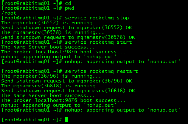 [root@rabbitmq01 ~]# service rocketmq start