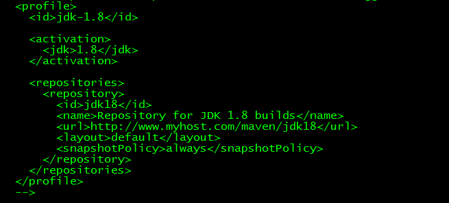 <url>http://maven.aliyun.com/nexus/content/groups/public/</url><localRepository>/usr/local/maven3.6/repository</localRepository>将默认的1.4替换为实际的1.8