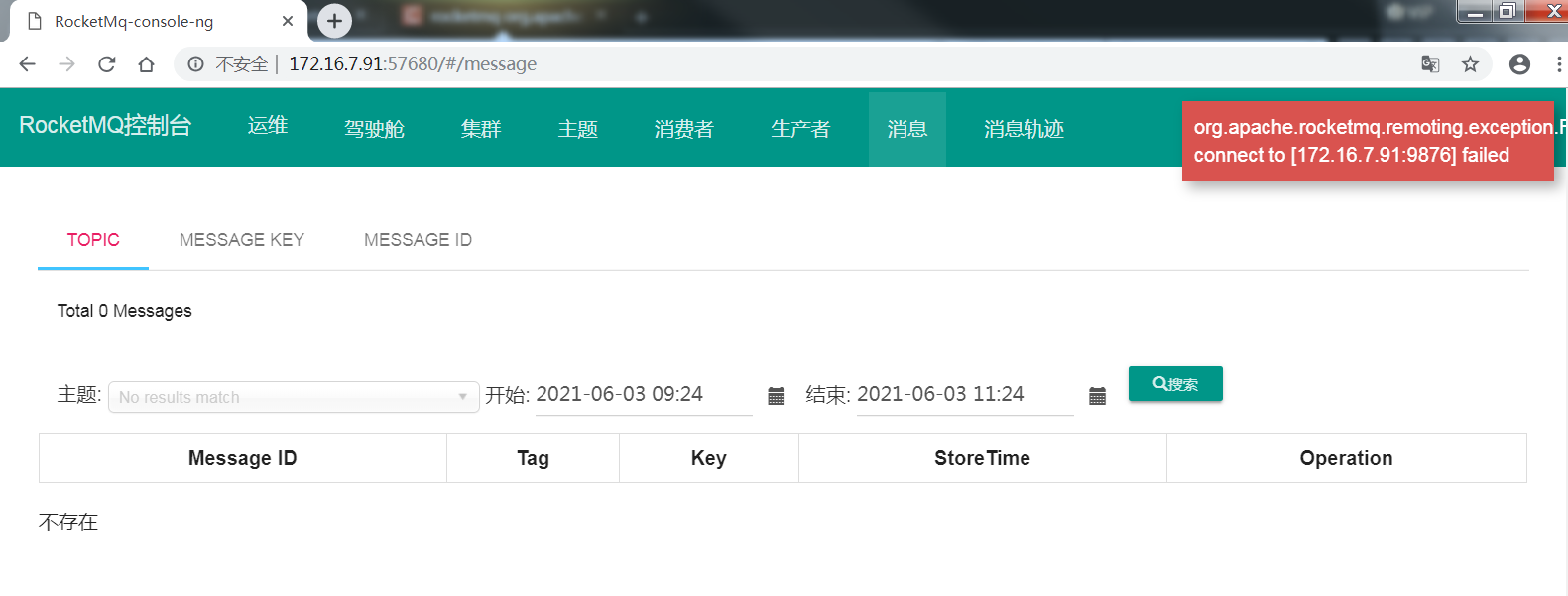 [root@rabbitmq01 target]# java -jar rocketmq-console-ng-2.0.0.jar原因是跨域造成的,需要修改服务器中broker的配置,添加服务器IP即可