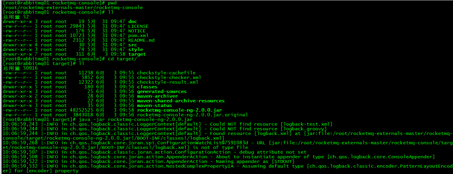 [root@rabbitmq01 rocketmq-console]# cd target/