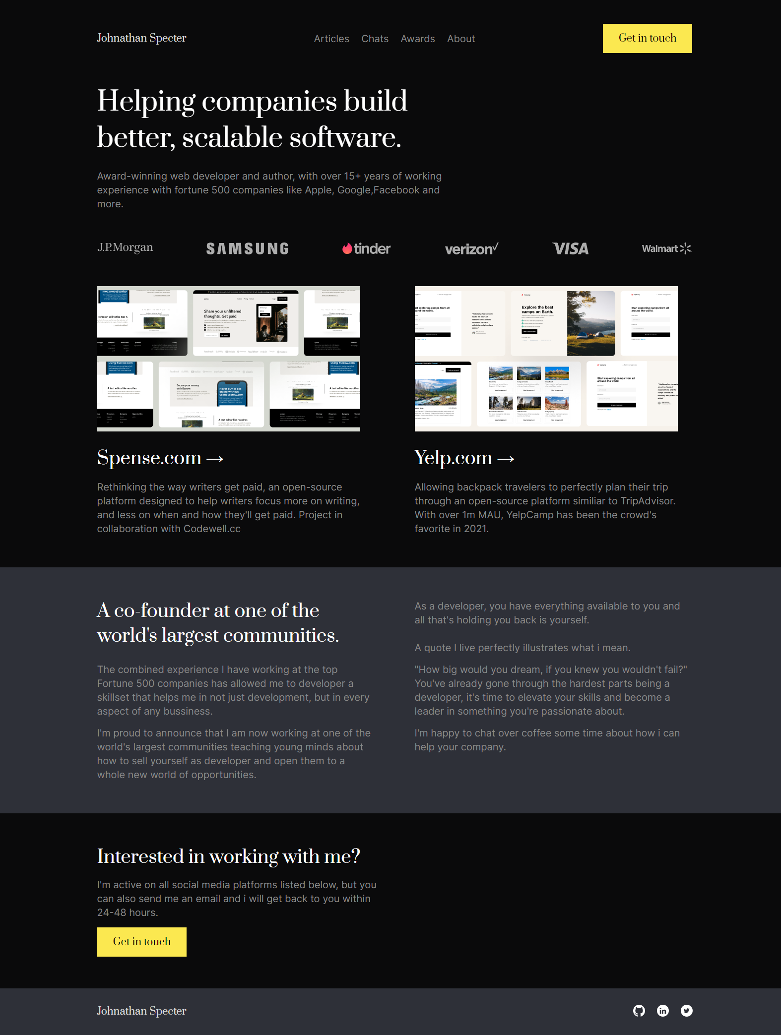 Landing page for developer portfolio coded with html, css and little bit of js for mobile menu, optimized with media queries. This is a one of challenges from Codewell coding platform. I've built this page from scratch using starter files from Codewell.