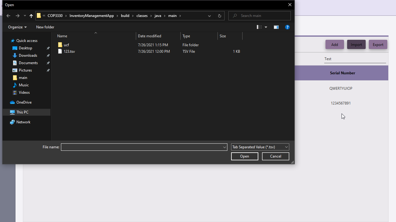 This program allows user to add, remove, edit, export and import items. Each Item have 4 properties that can be defined by the user (3 of them have to be difined and 1 is optional) Properies which have to be initialized are Name, Price and Serial Number (Date is optional).