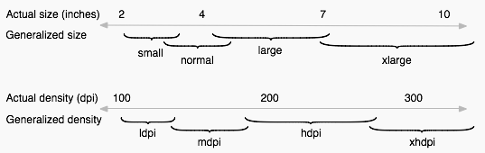 *3 Another good note: "The scaling that occurs for these depends not on the devices real density (dpi) but on which "bucket" of densities it falls into (see below). This can cause some problems handling screens that are significantly different but get bucketed the same.”