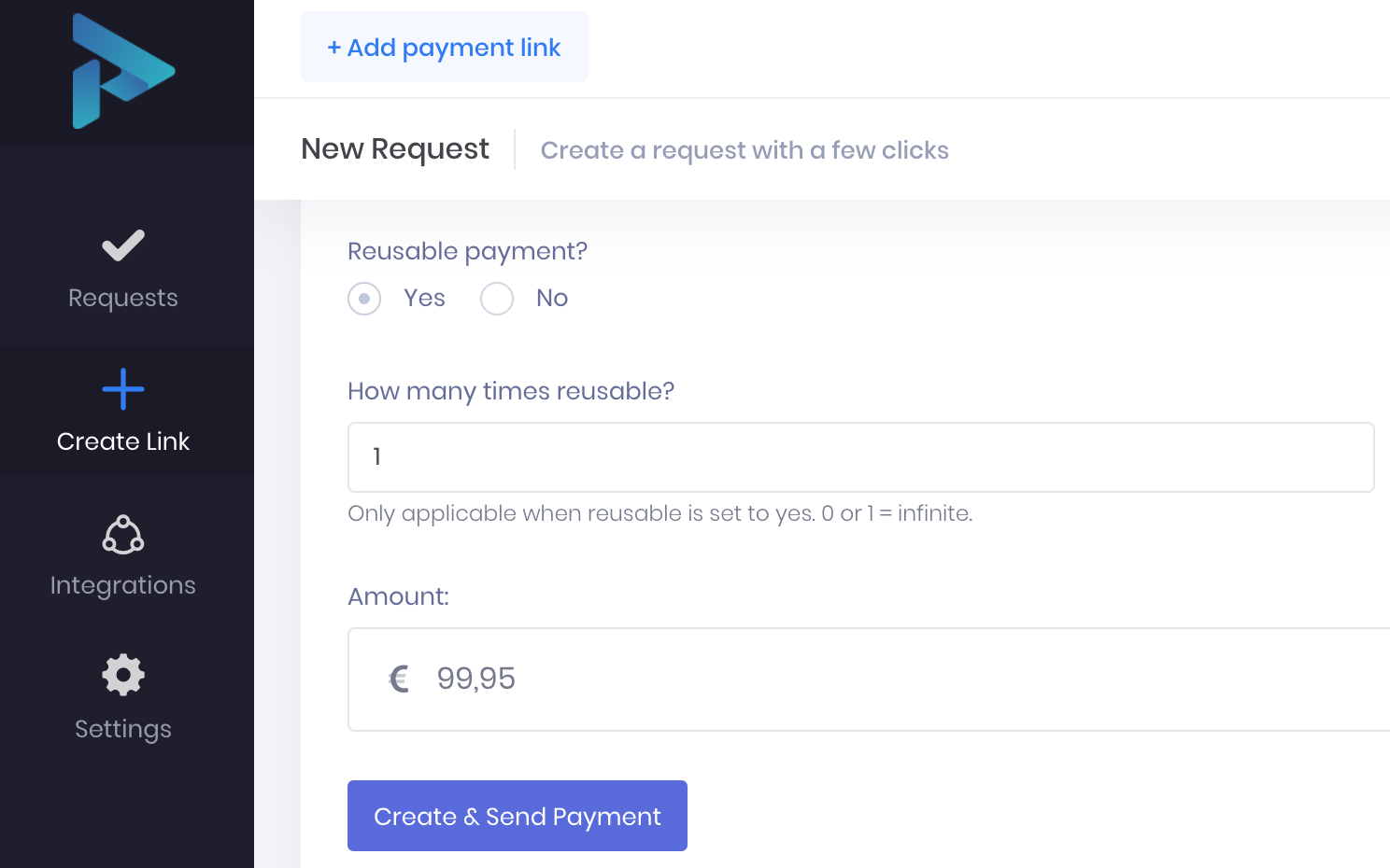 Start sending reusable payment linksCreate a payment link for your customer or use reusaable links to let all your customers pay.