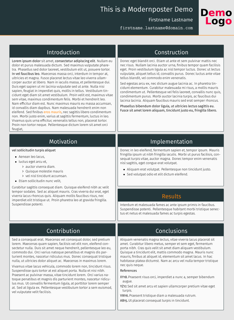 \end{document}The code was written by David Derler. He can be contacted via modernposter@derler.info.