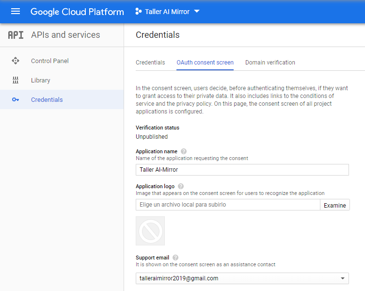 - You now need to set up an OAuth consent. Visit https://console.developers.google.com/apis/credentials/consent.