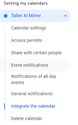 - Now, you will need the link from your personal calendar to integrate with the mirror. To do it, select Integrate the calendar in the left corner.