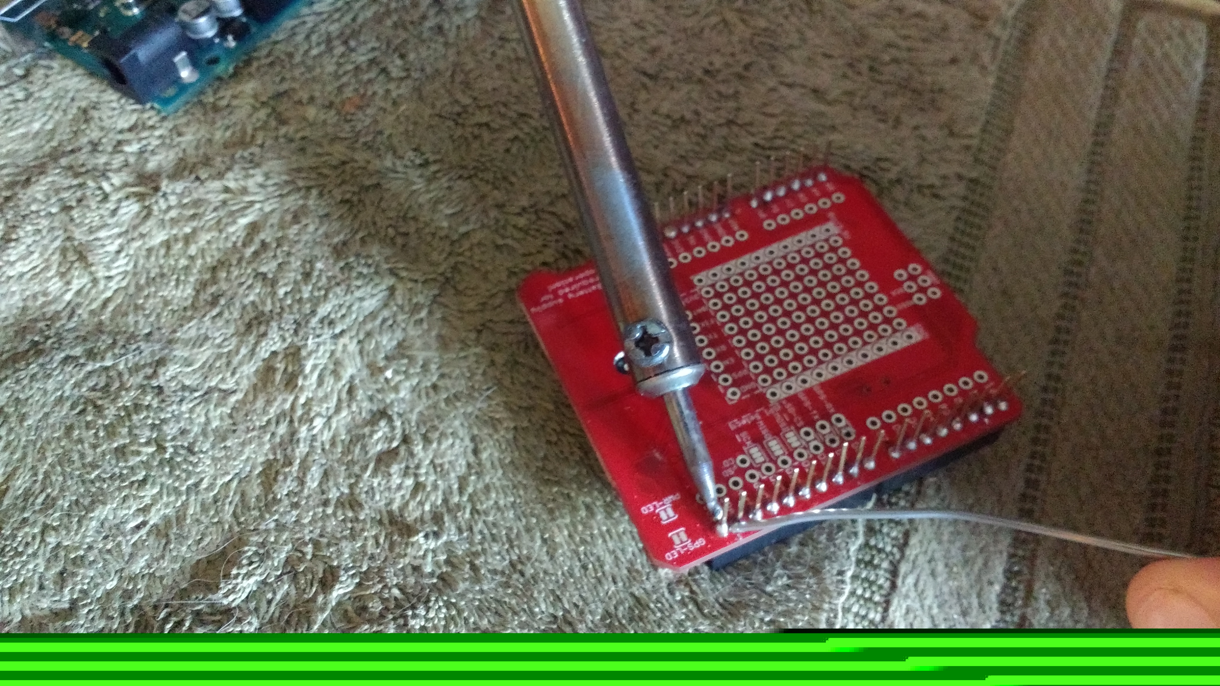 1. Solder your stackable header set onto the SparkFun GPS Logger Shield. Solder your board