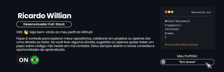 Neste perfil do GitHub, você encontrará uma diversidade de projetos nos quais tenho trabalhado, desde pequenos scripts até aplicações mais complexas. Fique à vontade para explorar, contribuir e deixar seus comentários. Juntos, podemos criar soluções incríveis e impulsionar a inovação na comunidade de desenvolvimento de software.