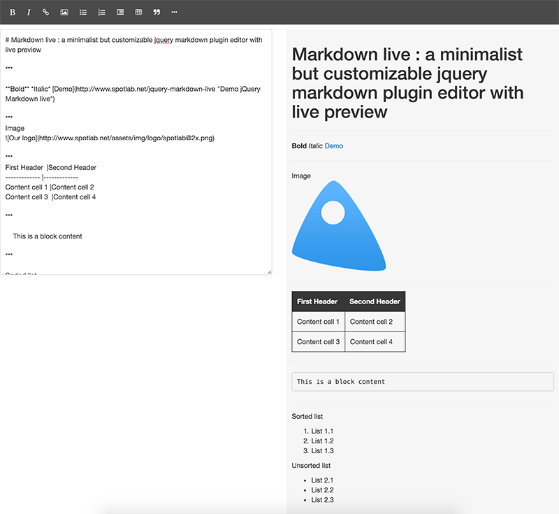 Minimalist but customizable jQuery markdown editor with live preview