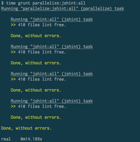 $ grunt parallelize:jshint:all