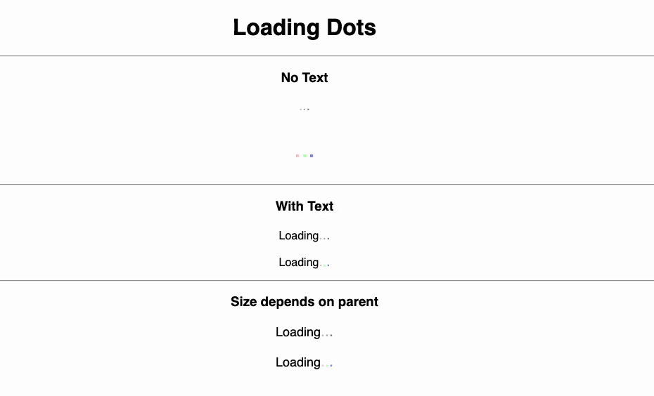 import 'loading-dots/loading-dots.css'<p>Loading<loading-dots>.</loading-dots></p>