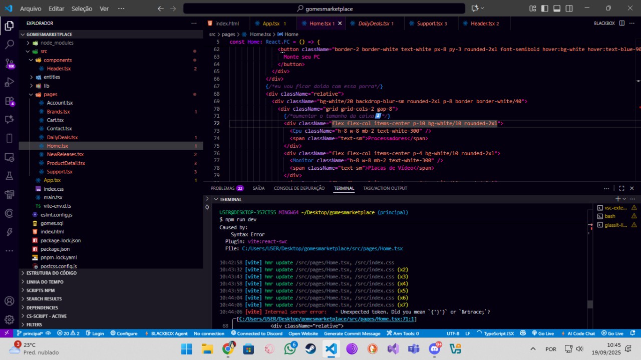 Descrição Este projeto consiste em um marketplace desenvolvido em dupla, com backend em Python, frontend em JavaScript e banco de dados gerenciado com SQL.