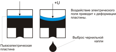 Пьезоэлектрическая технология была основана на способности пьезокристаллов к деформации под воздействием на них электрического тока ИсточникПравда о переменной капле Научный подход к восстановлению струйных картриджей: НР 51629А Устройство струйного принтера Печатающая голова под микроскопом
