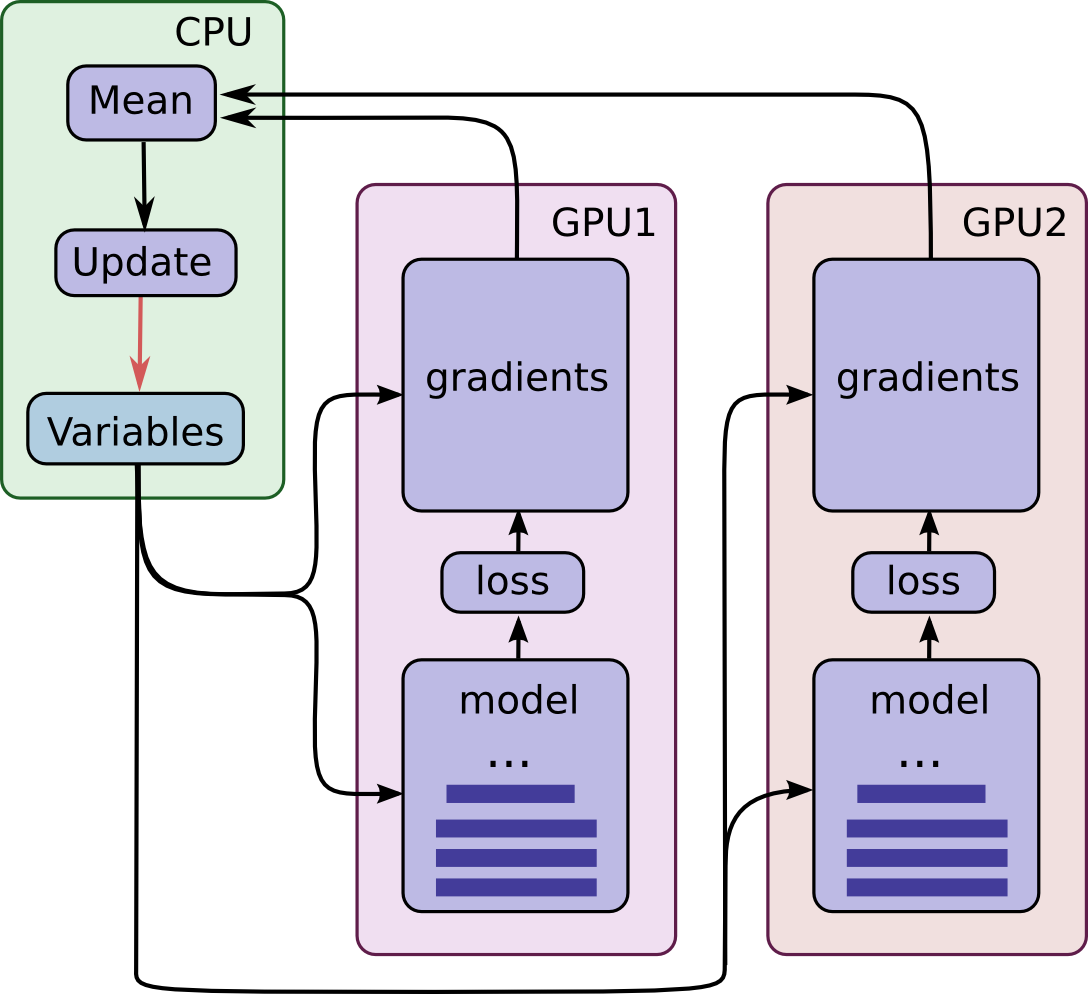 preprocessed images are stored in shuffling queue in which each GPU performs a
